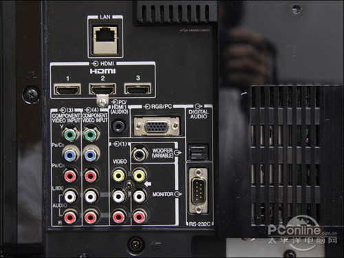 接口方面,ZV650C包括了4组HDMI高清影音接口,1组LAN接口,2组色差接口,1组VGA接口,1组RS-232接口,3组AV接口,SD卡槽、USB接口、S端子、耳机接孔,另外也包括了有线和天线接口各一个。