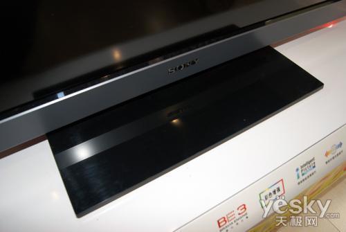在底部的金属拉丝面中部标有索尼的LOGO,凸起表面经过抛光工艺处理,在灯光的照耀下异常耀眼,标显了索尼液晶电视的身份。