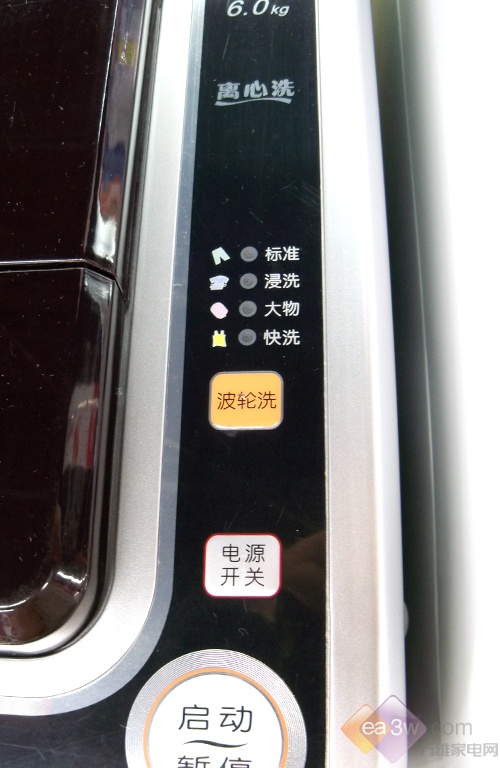 在操作面板方面,这款机器的设计也比较独特,一改往日的传统,将水位调节、漂洗次数等设置与洗涤程序选择分开。虽然设计比较独特,但是在实际使用过程中,并没有带来太多的便利性。