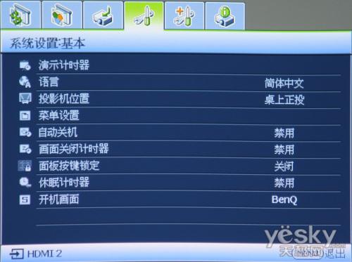 明基W600+在菜单的系统设定中,可以选择多种语言模式,并对投影机进行一些常规的系统设定。