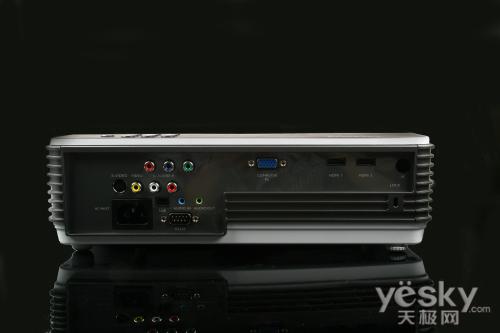 W600+背面是它的所有输入输出端口,W600+拥有色差、S-Video、AV等常见接口,可满足一般信号源输入需求,它还具有两组HDMI接口,可让用户同时连接蓝光播放器及XBOX 360或PS3游戏机等2套高清设备,避免来回插拔、更换信号源的麻烦。