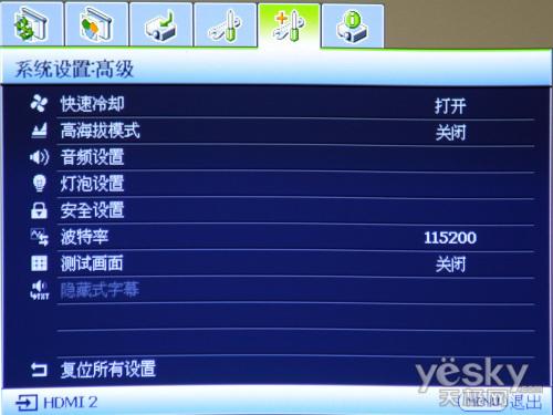 高级设置菜单中可以设置快速冷却模式,让用户不必花太多时间来等待投影机的关机。灯泡模式中用户可以降低灯泡的流明开控制投影机的功耗与灯泡的寿命。