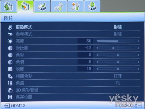 图像菜单提供对比度、亮度等常用选项,普通用户只需选择适合的图像模式。3D色彩管理技术可以让用户根据自己的喜好单独调节六种颜色(红/绿/蓝/青/洋红/黄)的亮度、饱和度,获得最佳的视觉享受。