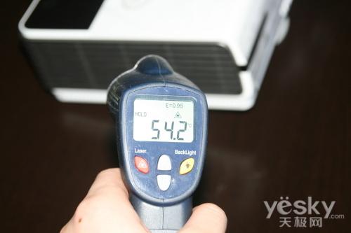 明基W600+工作状态下出风口温度为54.2度,做在投影机边上时间久了确实不好受,不过也说明了W600+的散热性能不错。