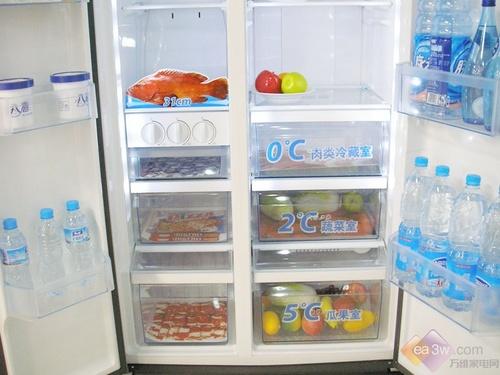 美的BCD-555WKM不具备变温室设计,只是两个简单的存储盒设计,不敌海尔BCD-576WJV的变温室设计。