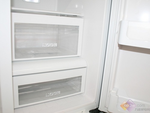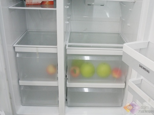 西门子KA62NV20TI的总容积为601L底部设计比较简单,冷藏室和冷冻室都是两层存储盒的设计版式,其中,冷藏室的盒盖设计比较独特,具有可掀开的部分,调节湿度。