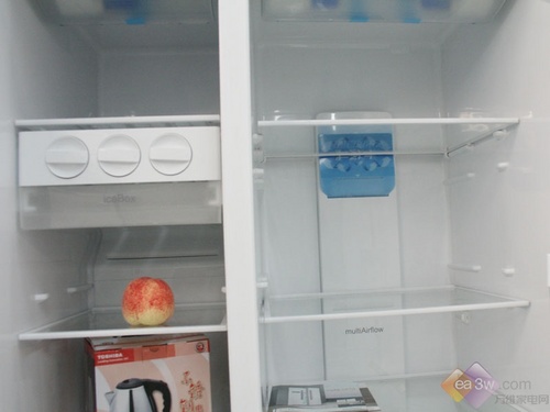 海尔BCD-576WJV的制冰装置采用的是旋转制冰的方式,旋转制冰方式操作起来比较方便,而两排旋转制冰量对于一款对开门冰箱来说,还是有一些少的。