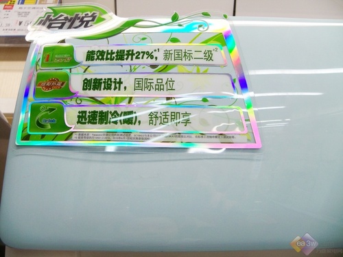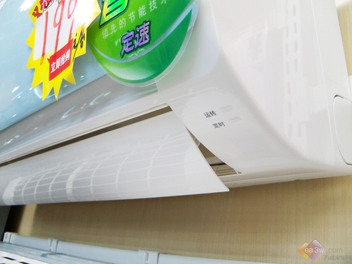 空调面板采用了淡淡的蓝色,在炎热的夏季给人以视觉上的清凉感,空调没有在面板上设置显示屏,而在出风口右侧设置了状态栏,空调开启后就会自动的显示温度以及运转模式。
