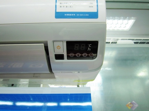 空调是一款外观面板采用了经典的白板设计,同时,空调的显示屏就设置在出风口上方,开启后,空调就会自动的进行温度以及运转模式显示。