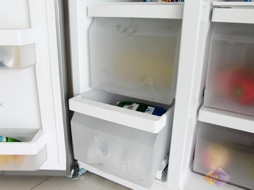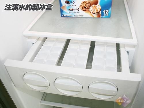 西门子KA62NV40TI的制冰盒被安置于冰箱的上半部分,这样的格局设计对于制冰操作才说并不是很方便,编者提醒使用者将注满水的制冰盒放回隔架上的时候,一定要小心操作,否则会有水流出。