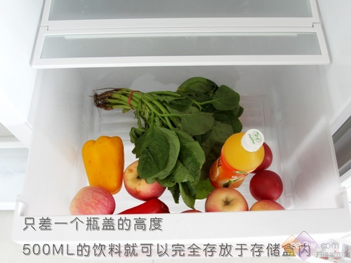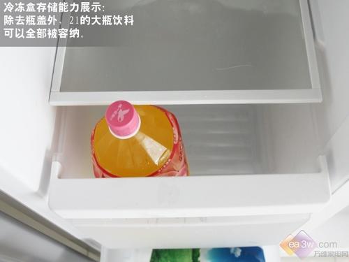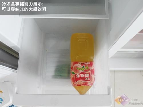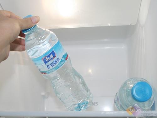 冷冻室在进行存储能力测试的时候,一瓶500ml的饮料的瓶盖“拦截”在外,表现一般。