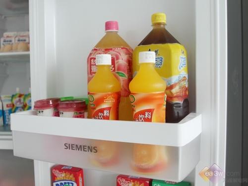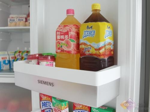 西门子KA62NV40TI的冷冻盒存储能力较强,无论是在深度和宽度上都表现不错,存放2L的饮料的时候,只是在在深度上差一点距离。