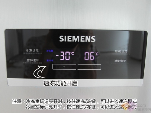 西门子KA62NV40TI的速冷或是速冷功能的开启需要启动冷冻室或冷藏室的调节模式。