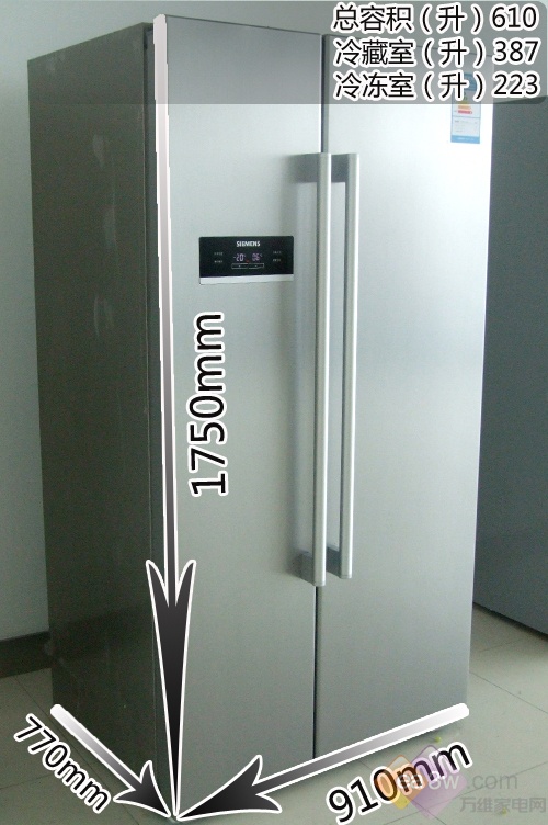 西门子KA62NV40TI的外形参数高*宽*厚分别是1750*910*77(mm),总容积为610L,这个容积是所有冰箱中最大的,存储能力较强。