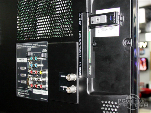 除了上面这些常见接口以外,LG还为SL90系列增加了一个电视卡插槽,内置符合国家标准的有线数字电视卡槽,只要插入“大卡”(即数字电视条件接收卡)和“小卡”(即接收信号的智能卡),在当地开通有线数字电视的条件下,不需要机顶盒,就可以直接收看有线数字电视信号,而且可以通过电视自带的遥控器就可以进行全部操作。