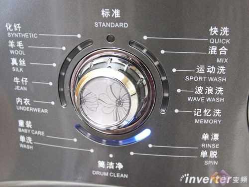 在程序选择钮的设计上也独具匠心,除了采用了电子模式拨盘操控、分段式LED灯光显示外,在程序选择钮的表现还细心的配备了精美的花纹,使整台机器看起来更加精致。