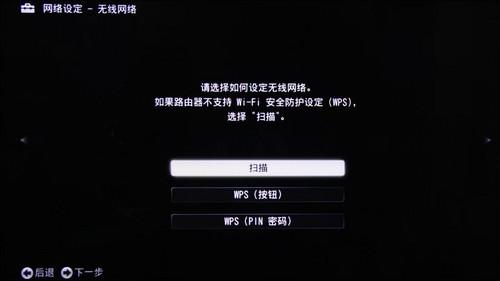 在无线网络设定界面,分为“扫描”、“WPS(按钮)”、“WPS(PIN密码)”三项,如果路由器不支持WPS,则可以选择“扫描”,系统将会自动搜索出可用的网络。通过实际体验,索尼60LX900的网络设定过程简单快捷,不到1分钟的时间就能完成设定。