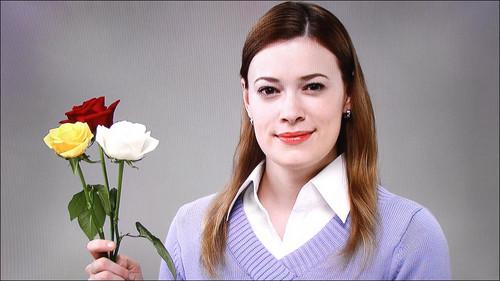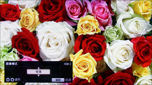 手持红、白、黄三色玫瑰的两位女生,表现肤色和毛发颜色比较细腻自然,手上的黄色和白色玫瑰色彩也表现准确,但红色玫瑰则不够艳丽,60LX900菜单还提供了额外的伽玛肤色调节选项,适合不同用户的个性化选择。