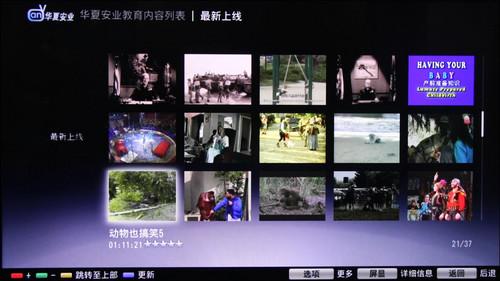索尼LX900的网络视频由华夏安业提供,因为评测机尚未做过注册,所以想要观看网络视频,必须先到索尼的官网和华夏安业的官网分别注册。索尼LX900的网络主界面将视频类型分为12种,包括了“最新上线”、“热门排行”、“高清经典”等。
