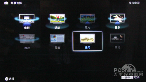 在索尼60LX900在系统设定中我们可以对电视的场景模式进行选择,其提供了电影、运动、照片、音乐、游戏、图表、通用、自动八个选项,用户可以根据个人喜好来进行个性化的选择。