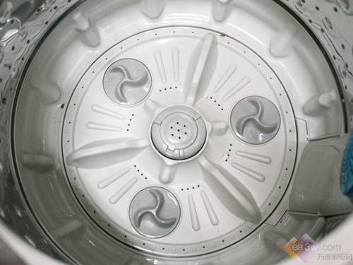 在内桶方面,底部配有三个小波轮,通过内桶与底盘波轮的反向旋转,产生强大水流,细致揉搓,如同手洗一般。