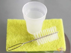 所以不得不手动清洗,用本机附赠的百洁布进行进一步清理,顺便也将过滤网和杯体外部也进行清洁。
