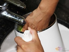 加水之后,将机头对准放入,接上电源,待指示灯全亮后,轻按“轻松洗”按键,就可以去做其他的事情了,比较省心。清洗完毕,机器会发出提示的声音,不过清洗的效果并不好,机头下盖处和杯底处。