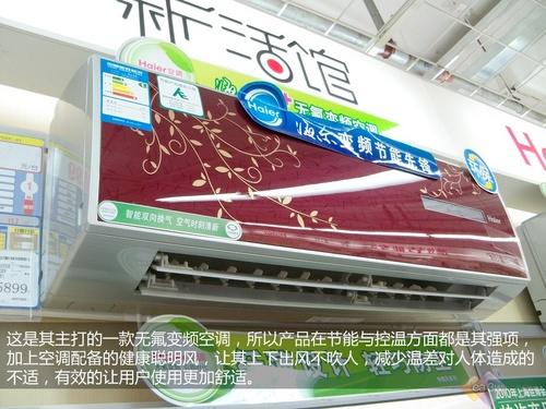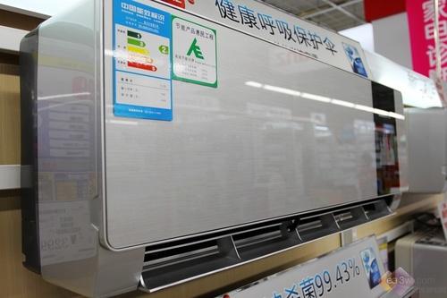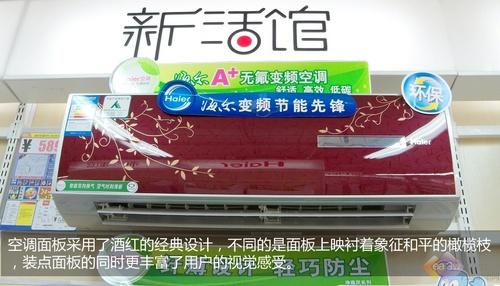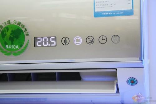 空调面板上延用了之前推出的一款节能机设计风格,不同的是这是一款无氟变频空调。