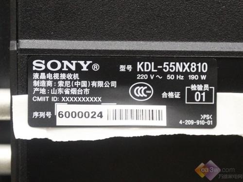 从表示上面图片中我们可以看出,索尼55NX810液晶电视的功率为190W,以及产地和产品的序列号等相关信息。