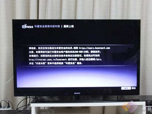 索尼KDL-55NX810 3D液晶电视要想观看网络中合作商的内容。需要进行两次注册这也正是国际大公司对版权保护非常重视的原因。注册链接和内容电视机会有提示。
