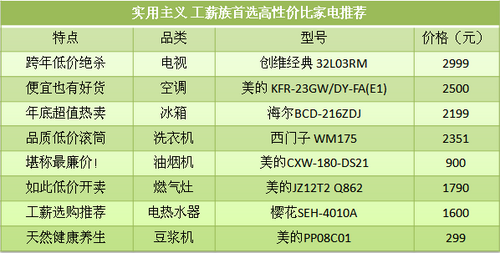 今天,笔者就给大家推荐全系适合工薪族选购的家电产品,这些产品不但价格便宜,有着较高的产品性价比,产品的性能也依旧出众,年底家装准备全套入手实惠家电的朋友也不妨一起关注下。