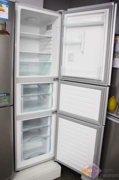 这款冰箱的总容积是216L,在三门冰箱中这个容积并不是很大,但是满足一家三口的使用需要还是足够的。
