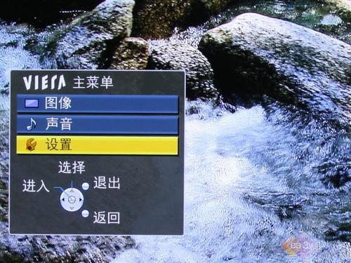 松下TH-P50VT20C等离子电视的主菜单相对于特色功能的多媒体菜单要简洁许多,有图像、声音、设置三个选项,为普通平板电视的设置内容大体相似,操作也非常简便。