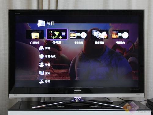 熟悉电视的朋友,相信一眼就能看出海信LED46XT39G3D智能电视的UI界面与TCL X11系列/P11系列互联网电视的UI界面较为相似,一级功能图标采用纵向排列方式,有节目、媒体、智能电视、设置、演示及帮助六大选项。