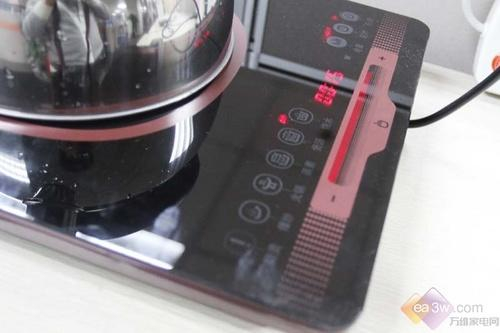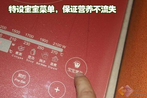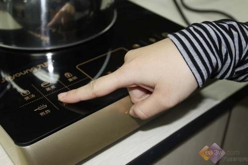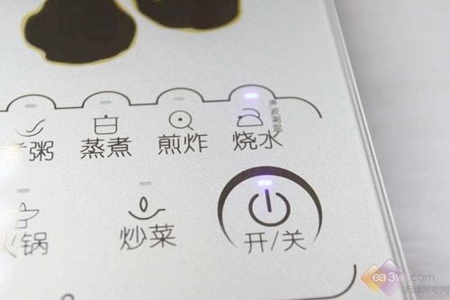 这款电磁炉采用轻触式的按键,具有火锅、爆炒、煲汤、蒸煮、烧水、定时、预约开关功能键,并且每个功能键都具有指示灯显示,用户可以清楚的了解到电磁炉的运行状况。