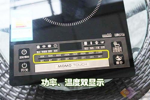 大家可以注意到,这款电磁炉与传统产品不同的是,多了一个功率(100w--2100w)和温度(60度--280度)的显示条,下方还设置了一个MOMOTOUCH5.0滑动感应触摸条,用户才使用的时候,只需要用手轻触不同的位置,可以直观的调节电磁炉的温度。