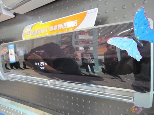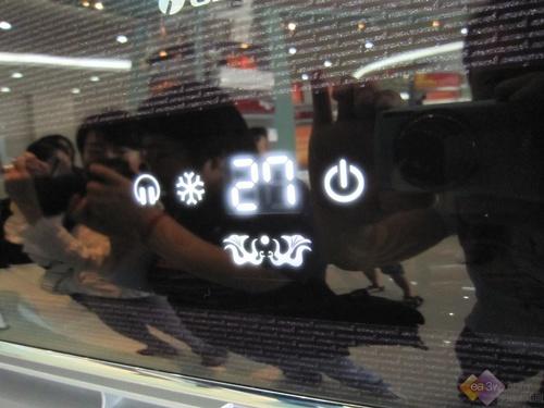 空调面板的闪亮设计是其卖点之一,同时,空调的显示屏就设置在出风口上方,开启后就会自动进行显示。