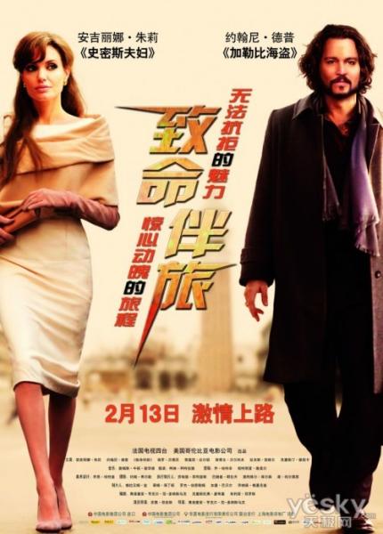 朱莉在《致命伴旅》中饰演一名国际刑警,在追捕与自己有过情史的罪犯过程中,让德普扮演的美国游客卷入阴谋。影片翻拍自2005年法国惊悚片《逃之夭夭》(Anthony Zimmer),原定由汤姆·克鲁斯(Tom Cruise)和查理兹·塞隆(Charlize Theron)担当主演,但是经过一系列的换角风波后,男主角曾从最先的克鲁斯换成了萨姆·沃辛顿,但最终制作方又把目光锁定在了约翰尼·德普身上。