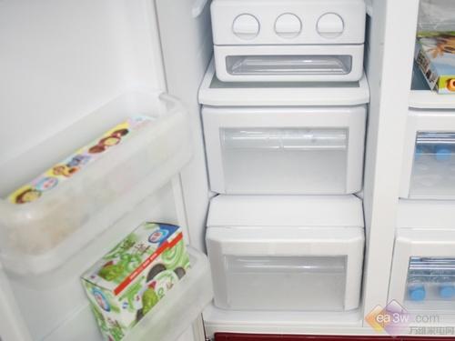 三星RSA3SHCR1内部运用旋转制冰盒,手动制冰相较于自动冰吧设计稍稍逊色了不少。