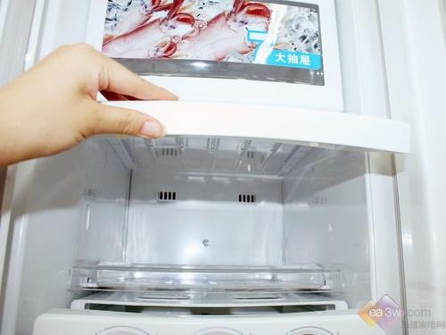 美菱BCD-350W冷冻室被设置于底部,选用抽拉的开门设计更加便于操作者的操作,同时,具有半自动制冰装置,突出了实用性与便利性。