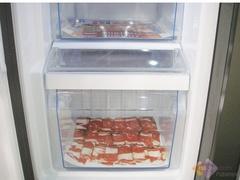 冷冻室内部有两排旋转制冰装置,制冰过程简单、方便。底部较大的存储盒设计,可以承装更多的肉类产品。