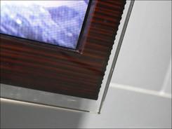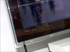 屏幕下方的正中央是一个向上的箭头标志,这是新一代AQUOS液晶电视的符号,同样的标志还可以在去年发布的LE700系列身上看到。“SHARP”的英文品牌LOGO设计在机身左下角,更能突显出产品的高档定位。