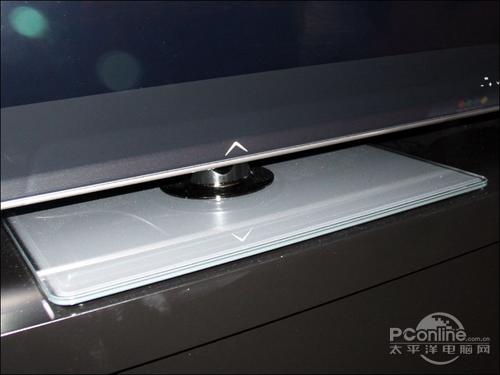 TCL P11系列机身屏幕左上角光滑简洁,没有喷涂任何的标志或LOGO。机身左下角内置了遥控器红外接收孔,咋一看上去显得浑然一体,若非仔细查看则难以发觉。在机身右下角是P11系列的触摸式OSD按键区,当手指触摸操控时,红色LED灯光会自然亮起,方便操控,触摸式按键包括了电源、确认、菜单、音频、频道等,确保在脱离遥控器的时候能够正常使用。