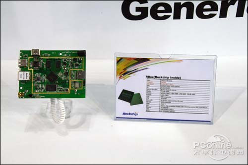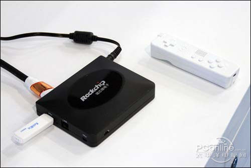 在展会现场的瑞芯R-box智能电视盒,设有1个LAN网络端口(支持光纤)、2个USB端口和1个HDMI端口,并内置无线与蓝牙模块。