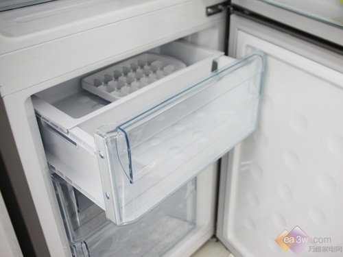 这款冰箱的冷冻室内安排了专门的制冰装置,两门冰箱的制冰过程不再复杂,更加简便。