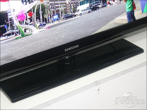 C530系列采用的是白色喷涂LOGO,黑底白色的“SAMSUNG”品牌LOGO显得非常醒目、典雅。C530系列采用的是注塑材质的方形底座,宽大的底座使得整部电视显得非常稳重。