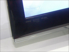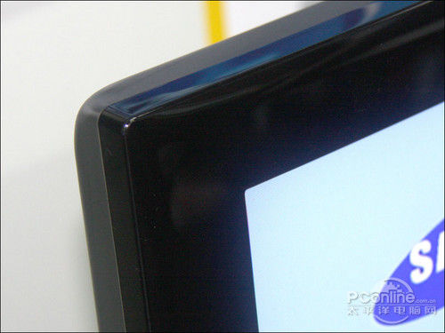 三星C530系列采用了垂直转角,黑亮亚力克屏幕边框简洁而光滑,底面边框上镶嵌有晶虹透明有机玻璃装饰条,形成了黑色边框向透明有机玻璃的过渡效果,整机显得晶莹剔透。三星系列机身屏幕左上角光滑简洁,没有喷涂任何的标志或LOGO。在机身右下角是C530的触摸式OSD按键区,包括了电源、频道、音频、项目、节目源等按键。