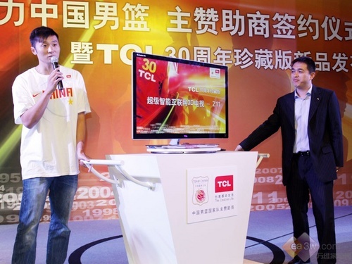 5月30日, TCL携手中国国家男子篮球队在北京联合召开“TCL助力中国男篮,主赞助商签约仪式暨TCL30周年珍藏版新品发布会”,隆重对外宣布,TCL正式升级为中国国家男子篮球队主赞助商。会上,双方还联手发布了TCL集团30周年珍藏版电视——Z11超级智能3D系列产品。此举标志着TCL与中国男篮的合作进一步深化,在品牌、产品、营销等多个层面已完成全方位对接。