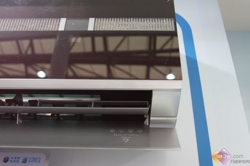 空调采用了经典的白板设计,特别的是,空调采用了镜面的条纹进行装饰,增加了空调的时尚感。空调的状态栏设置在出风口右侧,开启后就会自动进行显示。
