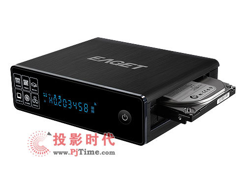 忆捷M80高清播放机外观采用进口全铝镁合金+高温拉丝工艺+超大VFD显示屏+外置SATA接口+硬盘抽拉设计,内嵌独立风扇与立体空间设计,超强散热。首创全自动硬盘抽拉设计方式,一秒钟解决内置硬盘装卸问题,增加最新技术VFD数字显示屏,可显示播放状态、时间进度列表等功能。